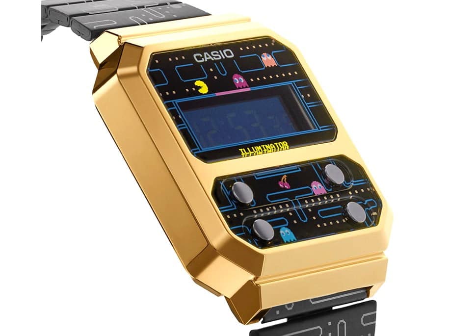 Najnowszy zegarek Casio Vintage x PAC-MAN o referencji A100WEPC-1BER powstał na bazie oryginalnego modelu F-100 popularnego w latach 80. XX wieku. Był to pierwszy zegarek kwarcowy Casio, którego kopertę pokryto żywicą. Posiadał także innowacyjne jak na tamte czasy funkcje: stoper, alarm oraz kalendarz. Ówcześnie był to jeden z najbardziej zaawansowanych zegarków cyfrowych.