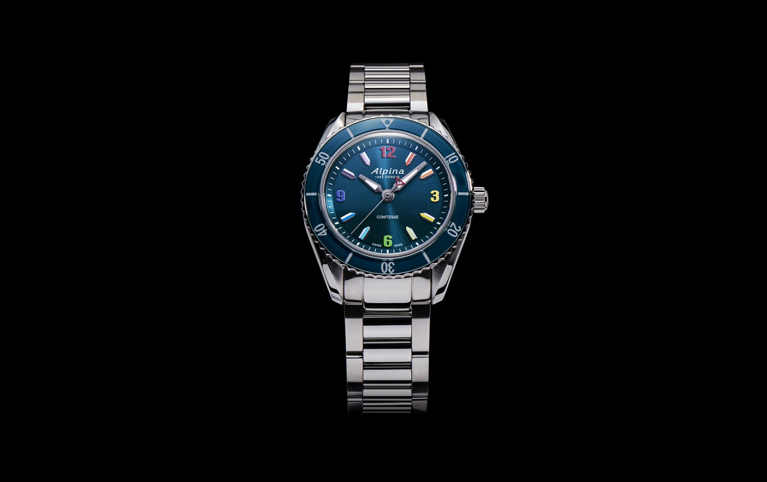 Za pomocą kolorów można przekazać wiele informacji. Najczęściej jednak za ich pomocą chcemy wyróżnić się z tłumu. Trend zauważyli również producenci zegarków, dlatego w ostatnim czasie coraz częściej i coraz śmielej możemy zauważyć na naszych nadgarstkach i na sklepowych półkach nowe kolory zegarków. Czerwony? Zielony? Niebieski? Sky is the limit! Szwajcarska marka Alpina podeszła do tematu jeszcze bardziej oryginalnie i w najnowszym damskim modelu zaprezentowała prawdziwą feerię barw. Aż 12 różnych odcieni widzimy na tarczy zegarka Alpina Alpiner Comtesse Sport Quartz Rainbow Limited Edition o referencji AL-235NRB3C6B.