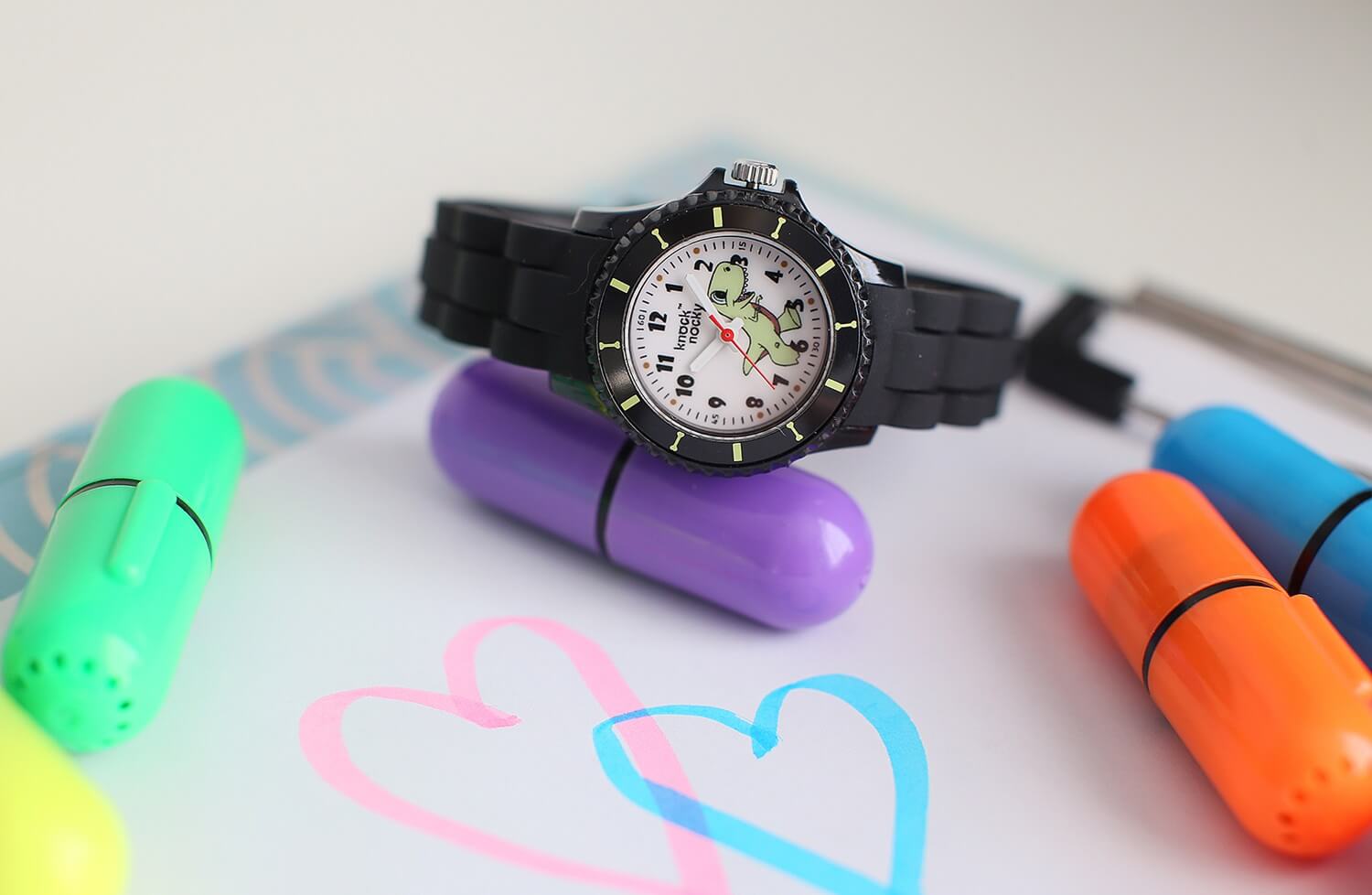 Marka Knock Nocky wytwarza wiele kolekcji kolorowych i bezpiecznych zegarków dla najmłodszych – zarówno dla dziewczynek, jak i dla chłopców. Wszystkie one zostały stworzone z myślą o dzieciach. Uwzględniając ich gust, potrzeby i… wysoką aktywność. To zegarki z dziecięcymi motywami, których wyraźne tarcze ułatwiają odczyt czasu – są więc idealne to nauki.