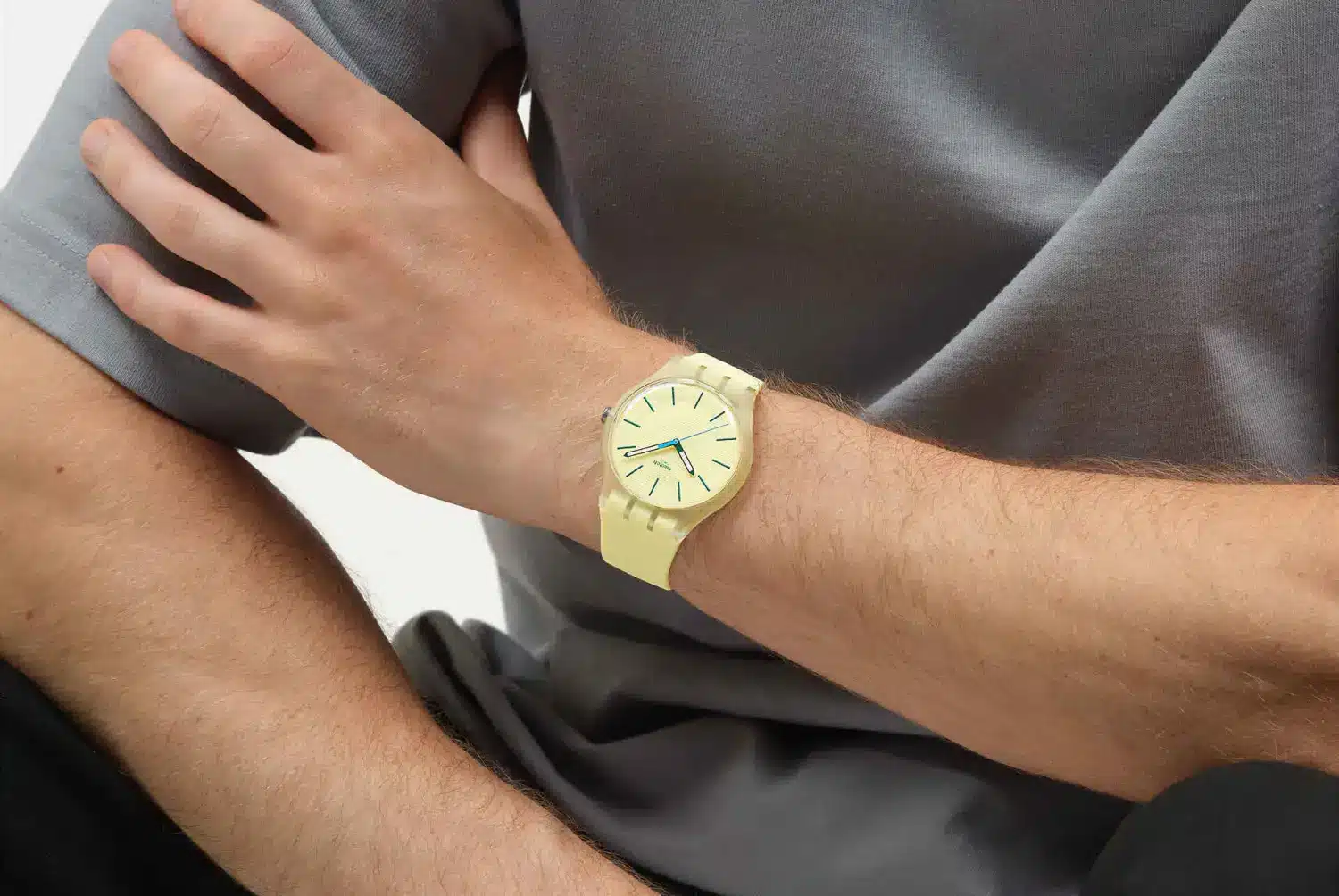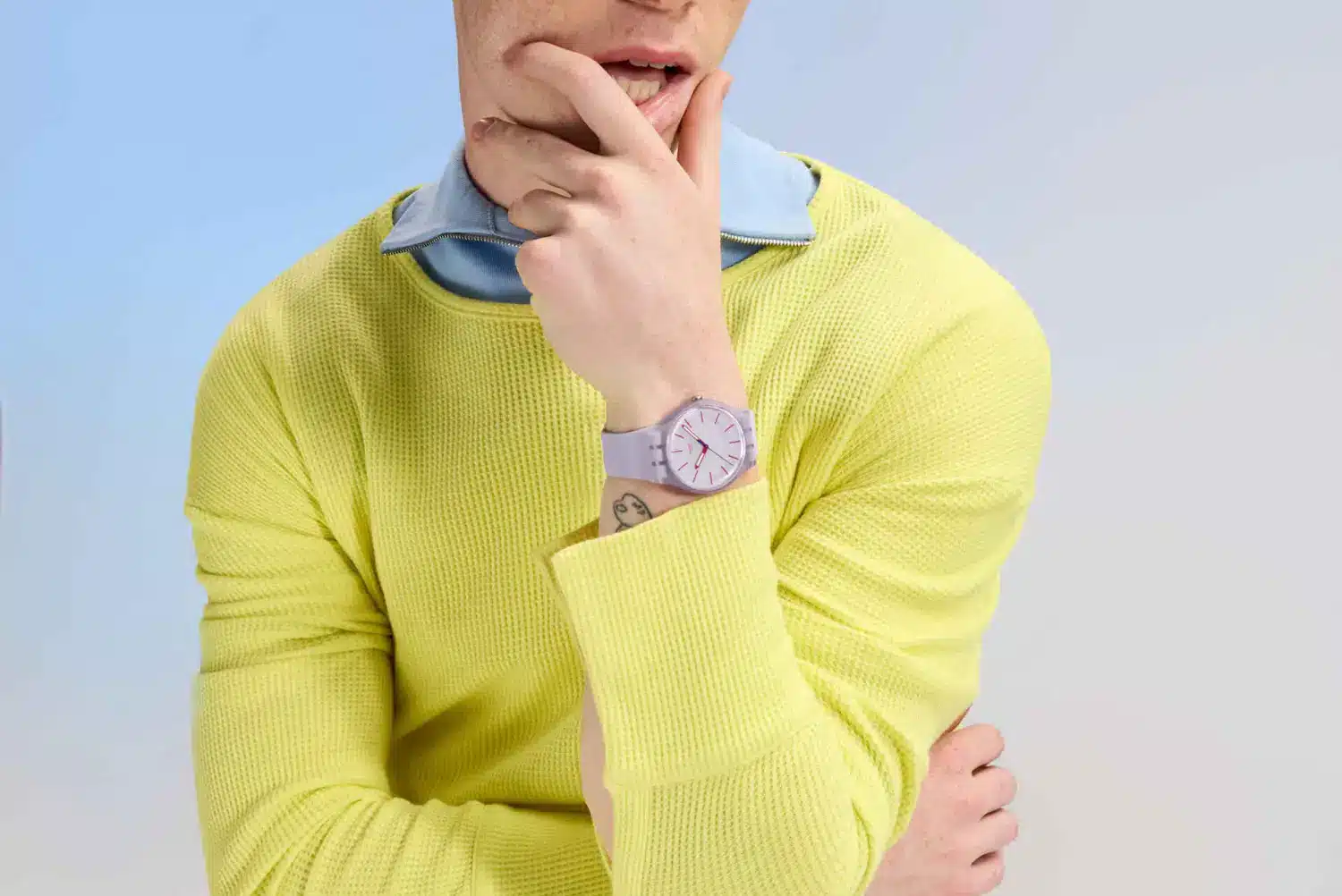 Modele z kolekcji Swatch Essentials łączą funkcjonalność z wyrazistym kolorem i prostotą formy. Blue Moves przypadnie do gustu miłośnikom minimalizmu i miejskiej elegancji, Lavendaze zachwyca pastelową świeżością, Citrus Tilt wprowadza energetyczny, słoneczny akcent, a Hint of Mint przyciąga kontrastowymi, miętowymi detalami. Wszystkie zegarki są lekkie, wygodne w noszeniu i łatwe do dopasowania do różnych stylizacji, dzięki czemu kolekcja Essentials sprawdza się zarówno na co dzień, jak i przy bardziej formalnych wydarzeniach.