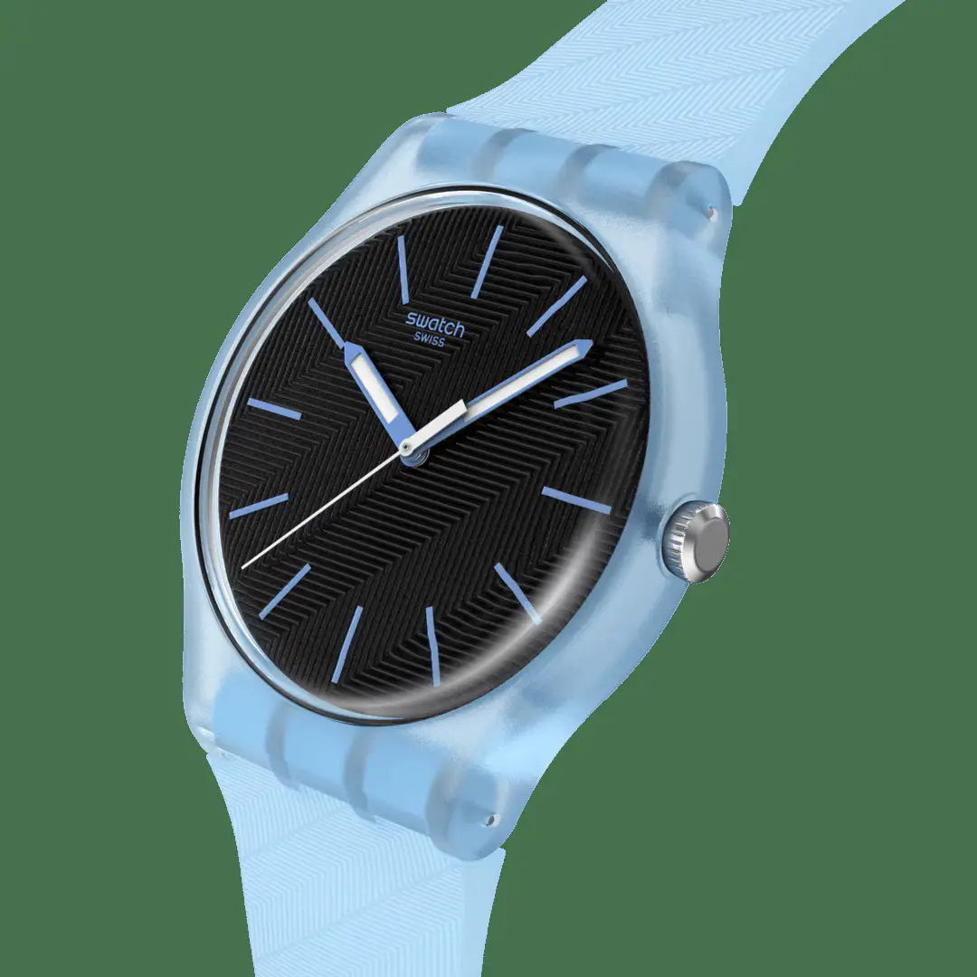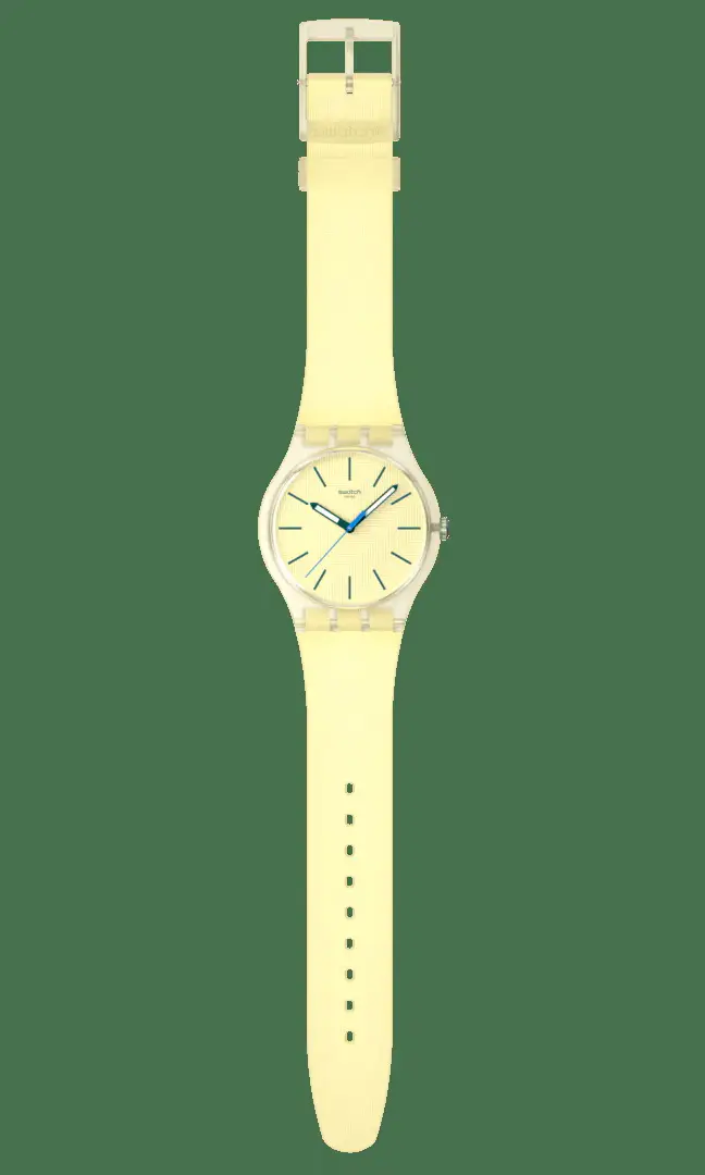 Nowa odsłona Swatch Essentials stawia na kolor i fakturę tarczy, ale robi to w bardzo użytkowy sposób: czytelne indeksy, proste formy, lekkość na nadgarstku i detale poprawiające komfort codziennego noszenia. Każda wersja to inna emocja, lecz wszystkie pozostają wierne zasadzie „łatwo, lekko, wyraziście”. Kolekcja Swatch Essentials na sezon 2025 to czwórka nowych modeli: Blue Moves, Lavendaze, Citrus Tilt oraz Hint of Mint.