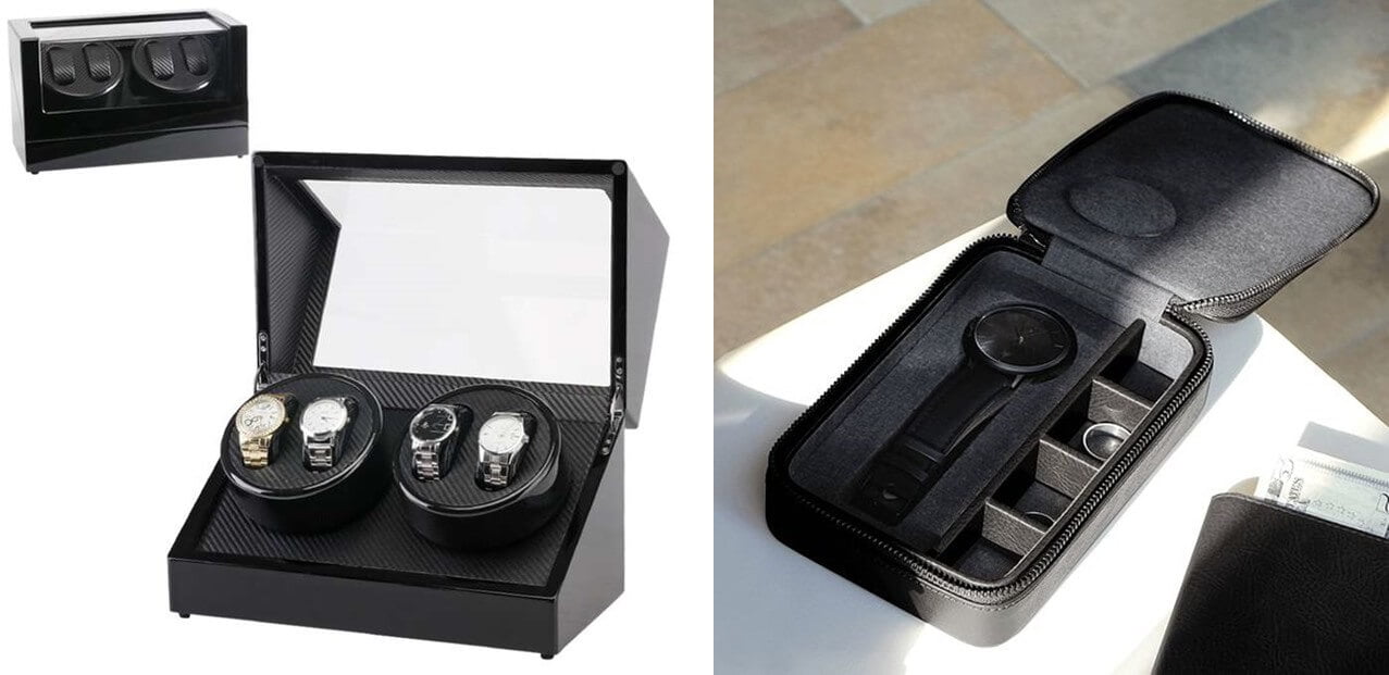 Takie mniejsze etui możemy z powodzeniem zapakować w całości do walizki i być spokojnym o naszą kolekcję zegarków. Ceny pudełek wahają się od 100 zł do nawet 1000 zł. Wszystko zależy od surowców zastosowanych przy produkcji. Jeśli postawimy na wysoką jakość wykonania, to takie szkatułki spełniają dodatkowo rolę dekoracyjną w naszym wnętrzu.
